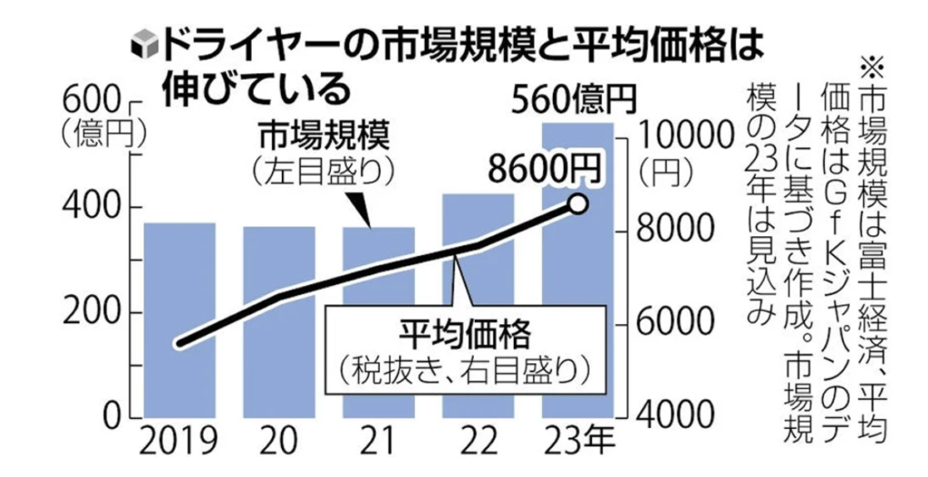 ここ最近のドライヤー市場の単価は上がっており、高機能・高価格化が顕著となっています。